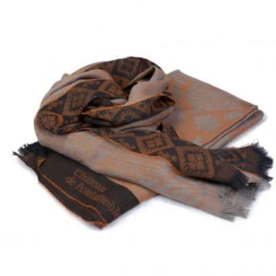 Personnalisation au nom du Château de Fontainebleau de l'une de nos étoles tissées.